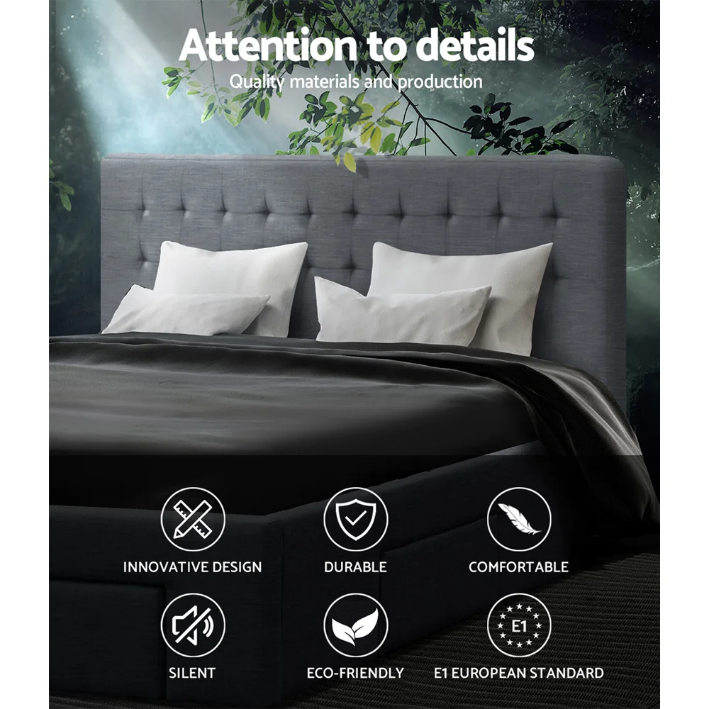 Artiss Avio Queen Bed Frame with 4 Storage Drawers, Tufted Headboard, Faux Linen Upholstery, Grey, 216x164.5x95cm