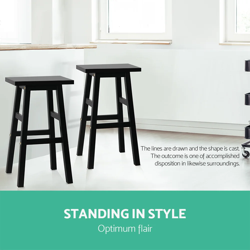 Artiss Baden Bar Stools Set of 2 – Black Beech Wood, 66.5cm High, Sturdy A-Frame, Split-Level Footrest, Anti-Slip