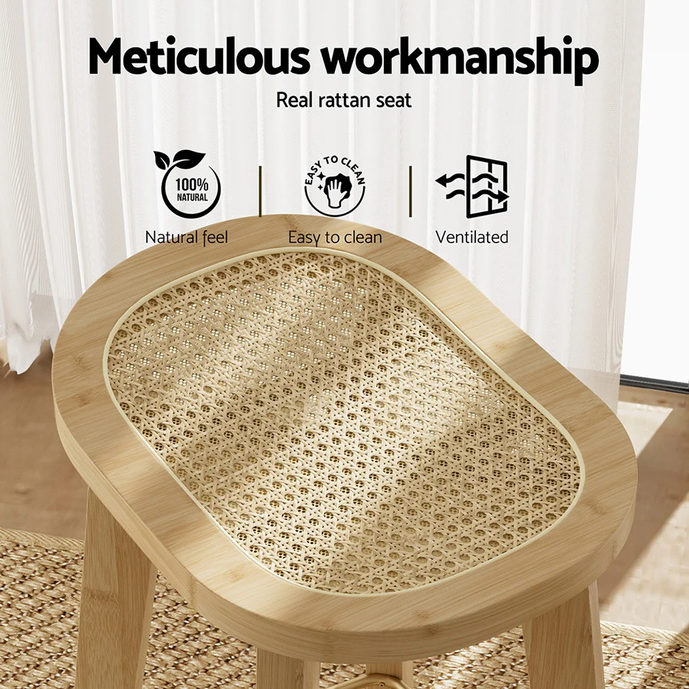 Artiss Set of 4 Bamboo and Rattan Bar Stools 67cm Kitchen Counter Chairs with Footrest, Sturdy Frame, Natural Finish