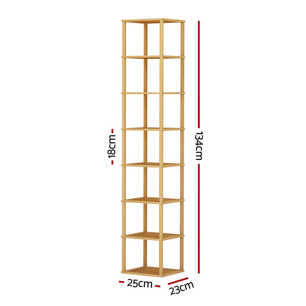 Artiss Shoe Rack, Bamboo MDF 8-Tier, Pine, 25x23x134cm, Stackable Storage for 8 Pairs, Durable & Easy Assembly