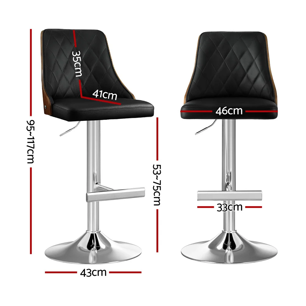 Artiss 2x Nuvo Bar Stools Black PU Leather, Adjustable Swivel with Chrome Base and Footrest, 53-74cm Seat Height
