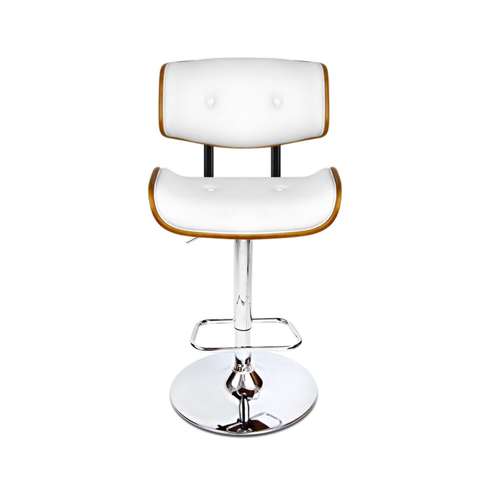 Artiss Bar Stool Gas Lift White Leather, Wooden Seat, Chrome Base, Swivel, Adjustable Height, 51x45x96-117cm