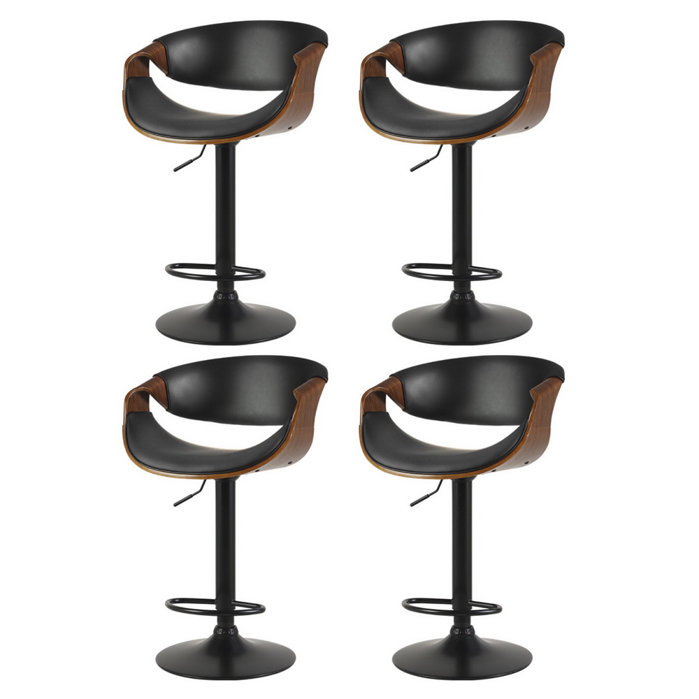 Artiss Bar Stools Set of 4, PU Leather, Adjustable Height, Black, 60-83cm, Contemporary Design with Armrest