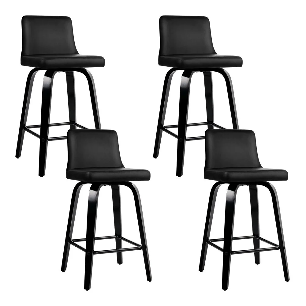 Artiss Felipe 360° Swivel Bar Stools Set of 4 - Black PU Leather, Plywood, Chrome Footrest, 87cm Height, Anti-Slip Pads