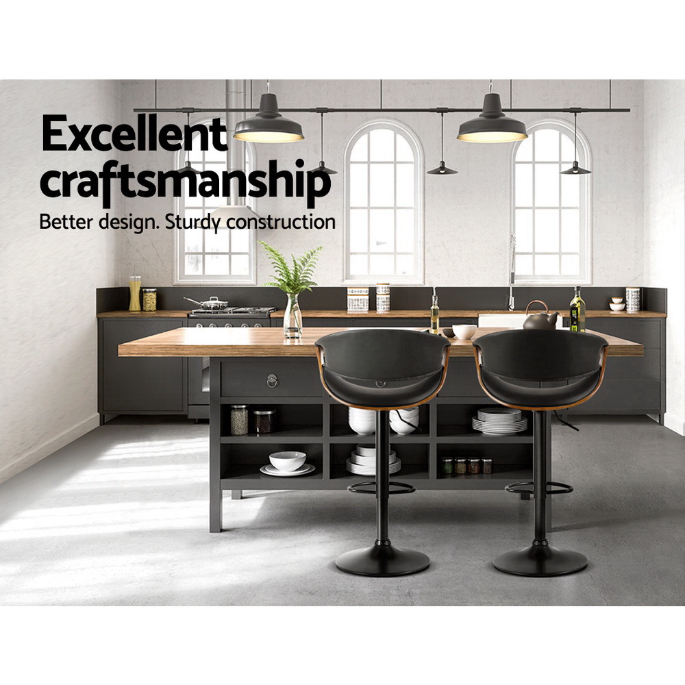 Artiss Bar Stools, PU Leather, Adjustable Height, Black, 60-83cm, Contemporary Design, Set of 2 w/ Armrests