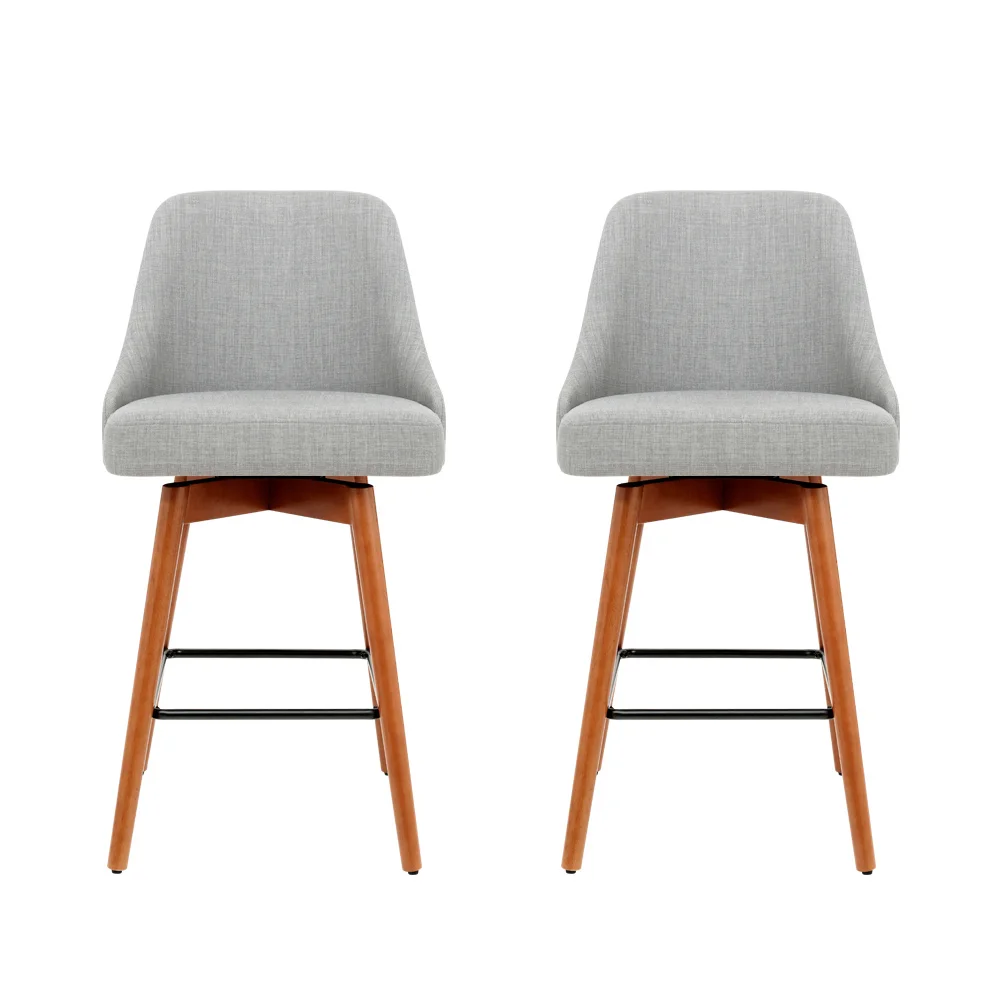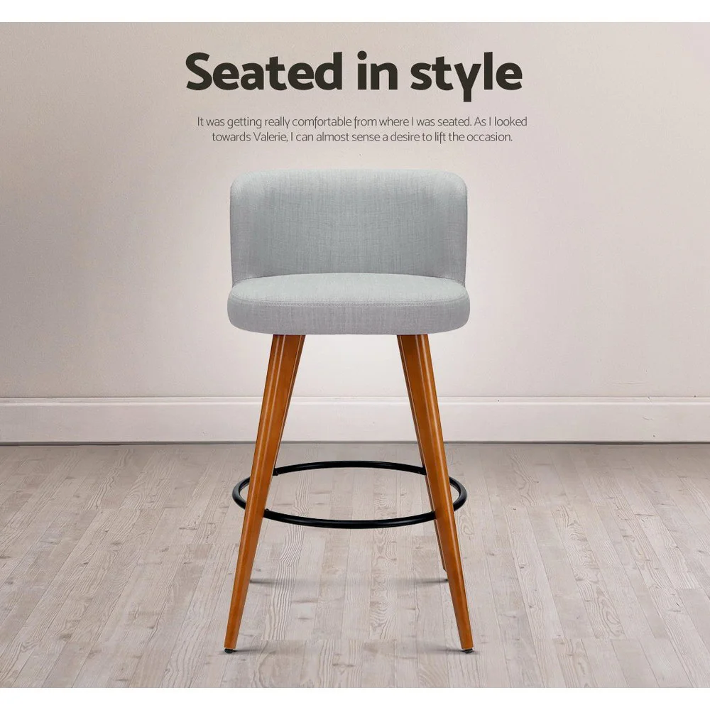 Artiss 2x Bar Stools Grey - Plywood Frame, Faux Linen Seat, Metal Footrest, 66cm Height, Anti-Slip Protectors