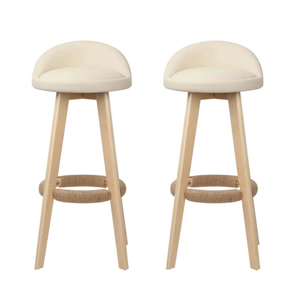 Artiss 2x Bar Stools - Beige PU Leather, Wooden Frame, 360° Swivel, Padded Seat, Floor Protectors, 36x36x79cm