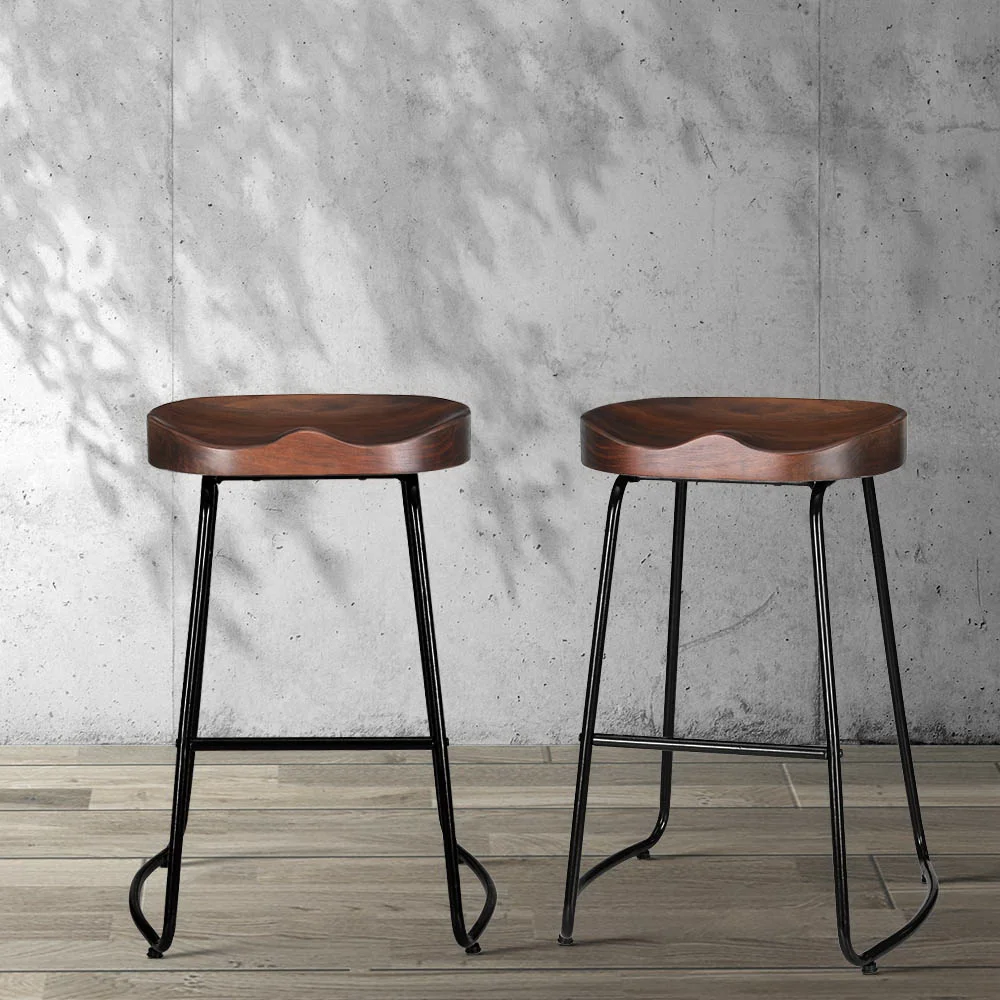Artiss Bar Stools Pinewood Tractor Seat 65cm Black Legs Vintage Industrial Design Retro Style Pair 1-Year Warranty