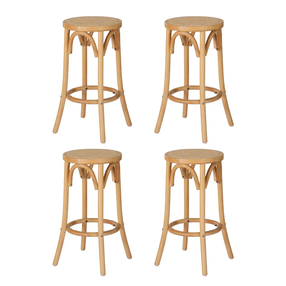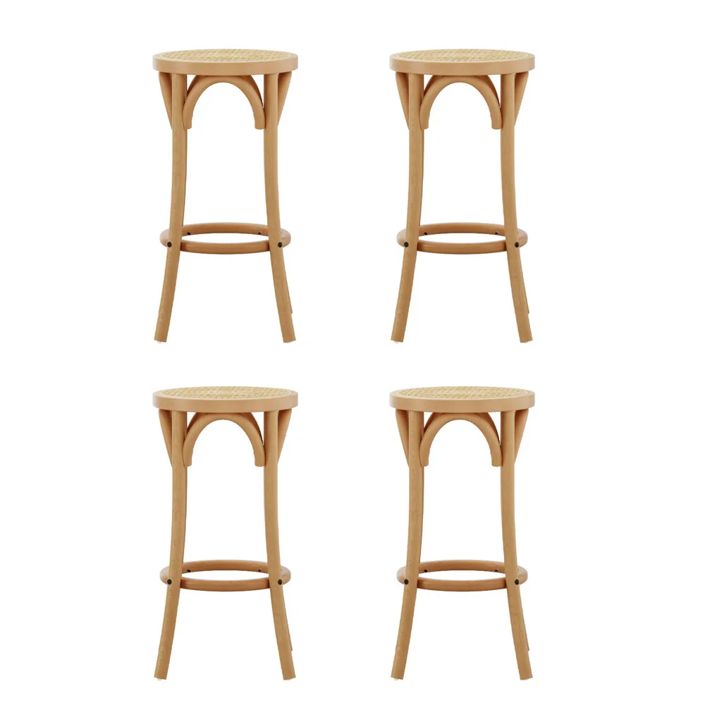 Artiss Bar Stools, Rattan Seat, Beechwood Frame, 65cm Height, Pine Finish, Set of 4, Classic Design, Easy Assembly