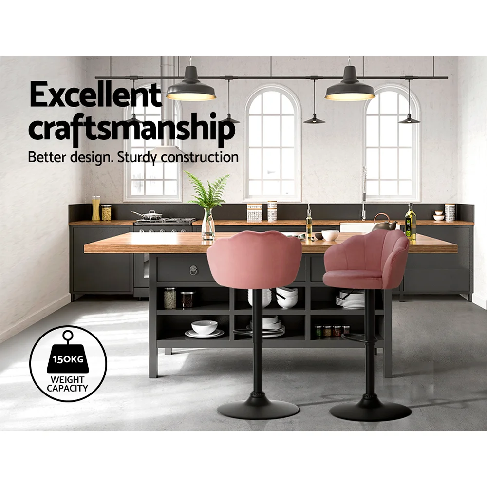 Artiss Nessah Bar Stools, Velvet, Adjustable Height, Pink, 360° Swivel, Elegant Clam Shell Design, Set of 2