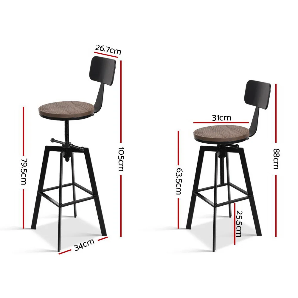 Introducing the Artiss Bar Stools Kitchen Counter Chairs, where vintage charm meets modern functionality. Crafted from a harmonious blend of metal and wood, these stools feature a premium elm wood seat that elegantly complements the steel contoured backrest and frame. Designed for comfort and versatility, the 360-degree swivel seat can be adjusted to your desired height, ensuring a perfect fit for any counter. The sturdy steel framework is finished with a heavy metallic look, while anti-slip rubber protectors at the base keep floors pristine and scratch-free. Ideal for any stylish kitchen or bar setting, these stools are as functional as they are fashionable.