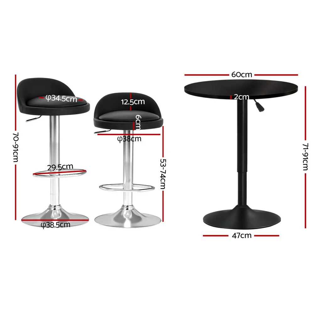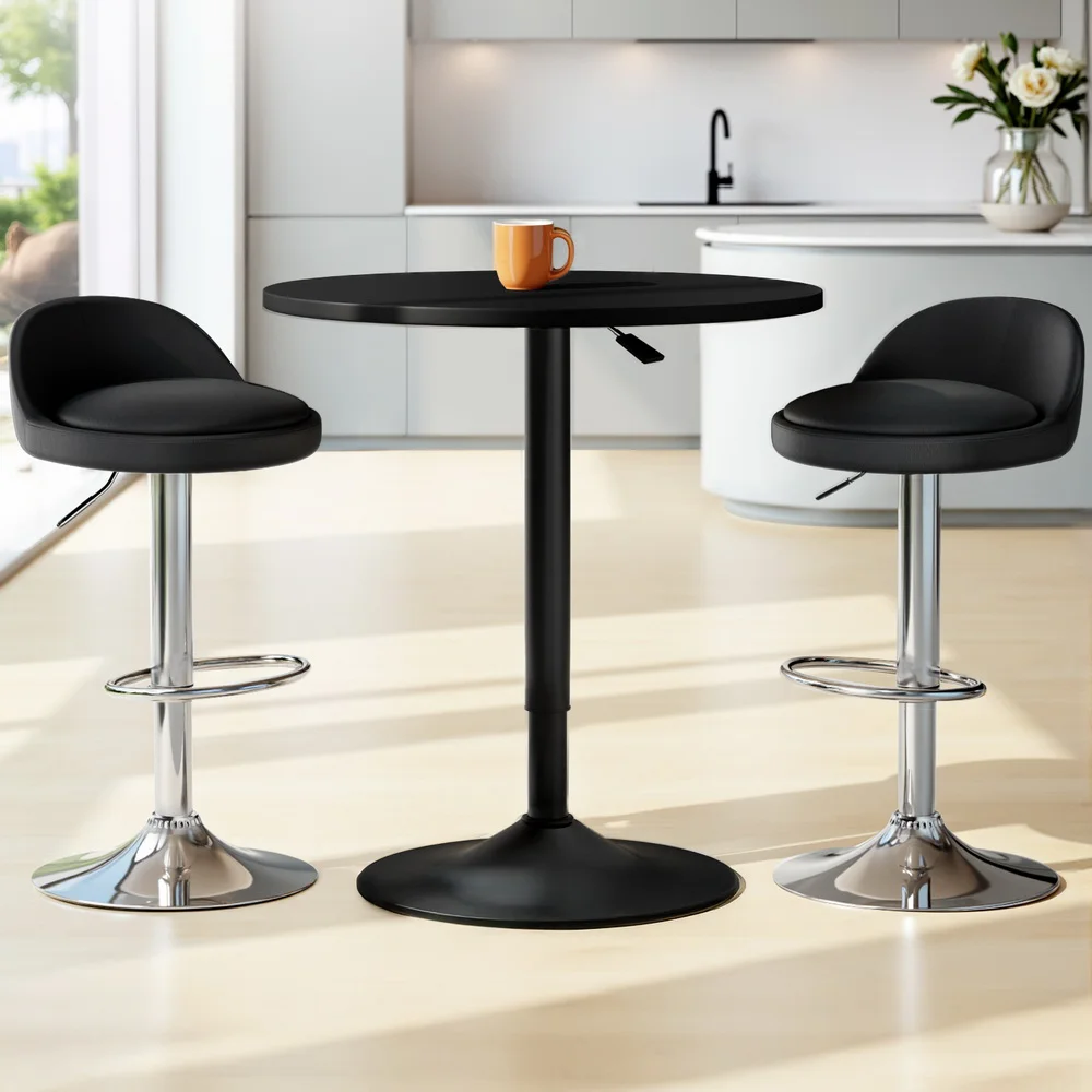Artiss Bar Table and Stools Set Black, Height Adjustable, PU Leather, 60cm Table, Swivel, for Kitchen or Cafe