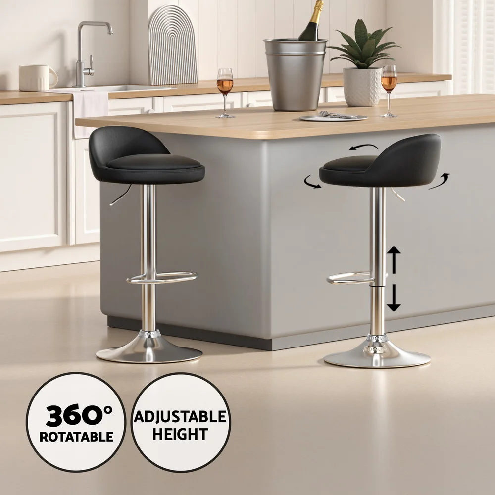 Artiss 4x Elan Bar Stools - Black PU Leather, Rhombus Backrest, 360° Swivel, Gas Lift, Chrome Finish, 66-79