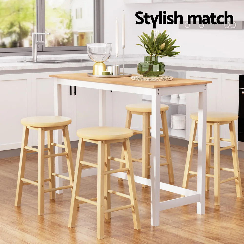 Artiss Solid Wood Dining Set: Bar Table & 4 Beech Stools, Pine Finish, 30kg Capacity, Easy Assembly, Non-Toxic Paint