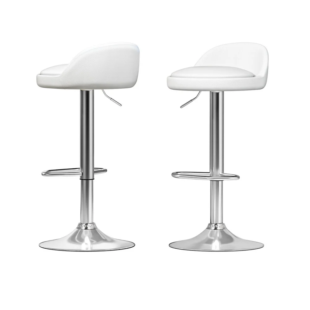 Artiss 2x Bar Stools - White PU Leather, Chrome Gas Lift, Wooden Seat, 130kg Capacity, Easy Assembly, 1-Year Warranty