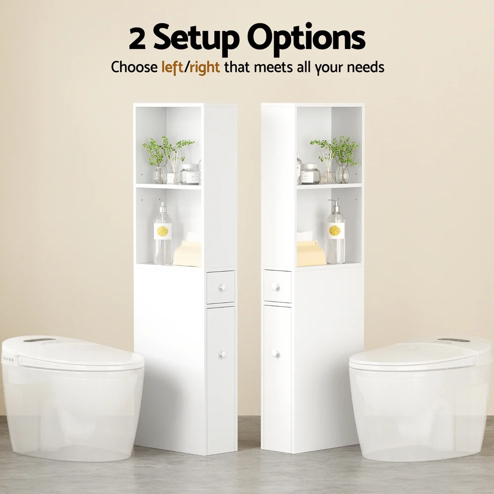Transform your bathroom into an oasis of organisation with the Artiss Bathroom Storage Cabinet. This sleek and compact cabinet, standing at 135 cm tall, is designed to fit effortlessly into tight spaces while offering ample storage. Its multi-functional design includes adjustable open shelves, a convenient slide-out drawer for smaller items, and a pull-out cabinet with 3 wheels for easy access. The cabinet's smooth metal handles ensure effortless operation, and with options for both left and right set-up, it offers a personalised fit for any room. Made from durable E1 particle board, this cabinet is not only easy to clean but also easy to assemble, making it the perfect addition to your home.