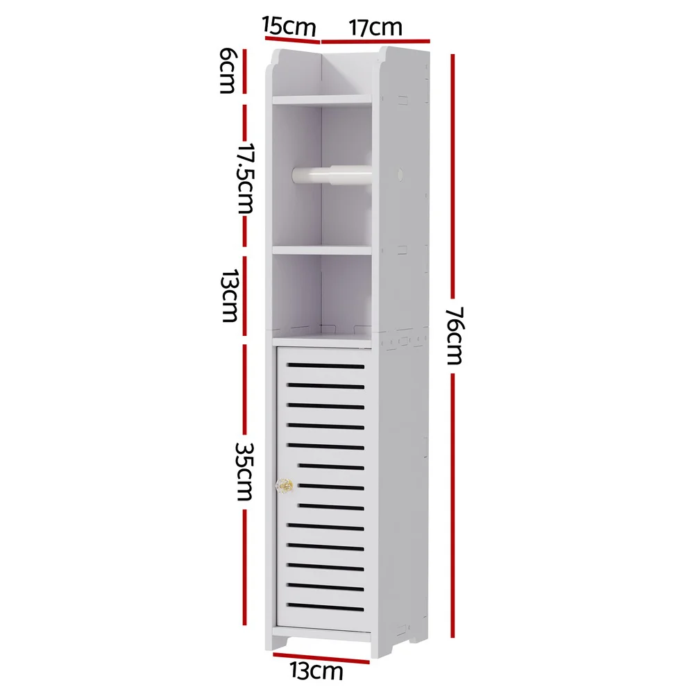 Artiss 3-Tier Bathroom Cabinet: Water-Resistant PVC, Slim Design, Toilet Roll Holder, Ventilated Storage - 17x15x76cm