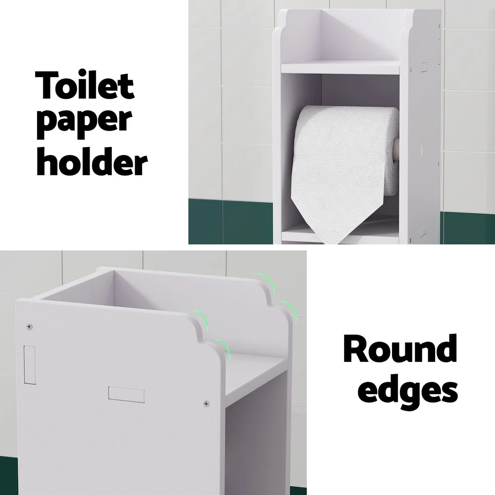 Artiss Slim Bathroom Storage Cabinet & Tissue Holder, 50x16x58cm, Eco-Friendly MDF, White, Space-Saving Design