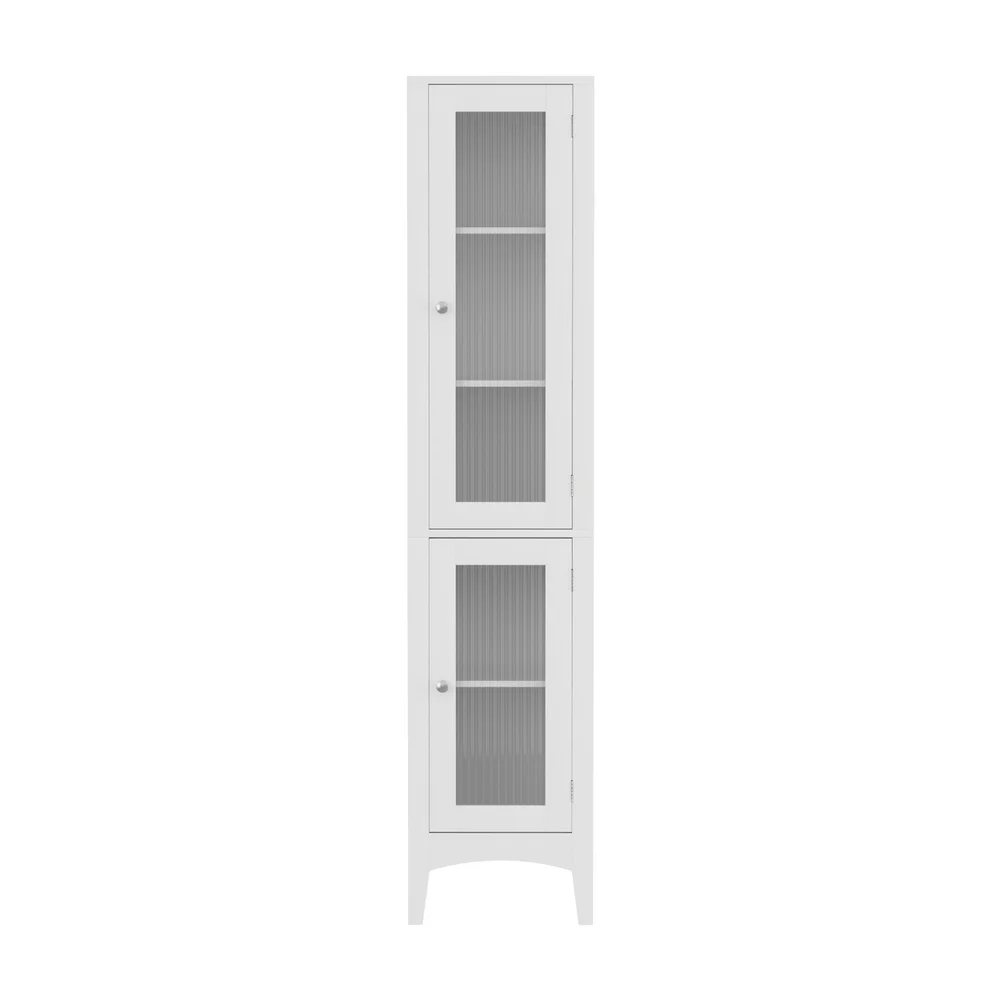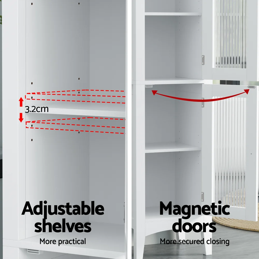 Maximise your bathroom space with the Artiss Bathroom Storage Cabinet. Featuring a slim, 160cm-tall design, this elegant white cupboard fits perfectly in tight spots while offering generous storage. Five-tier shelves behind tempered glass doors keep your essentials organised and visible. Crafted from durable MDF with an easy-clean finish, adjustable shelves, and anti-toppling device ensure safety and flexibility. The elevated base prevents water stains, while magnetic doors with nickel handles add convenience and style to any room.
