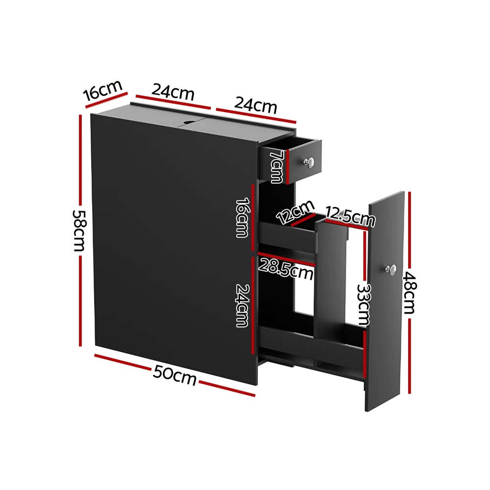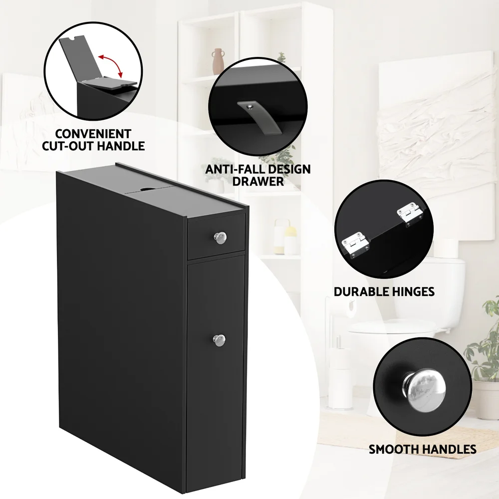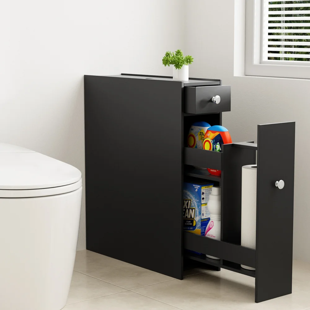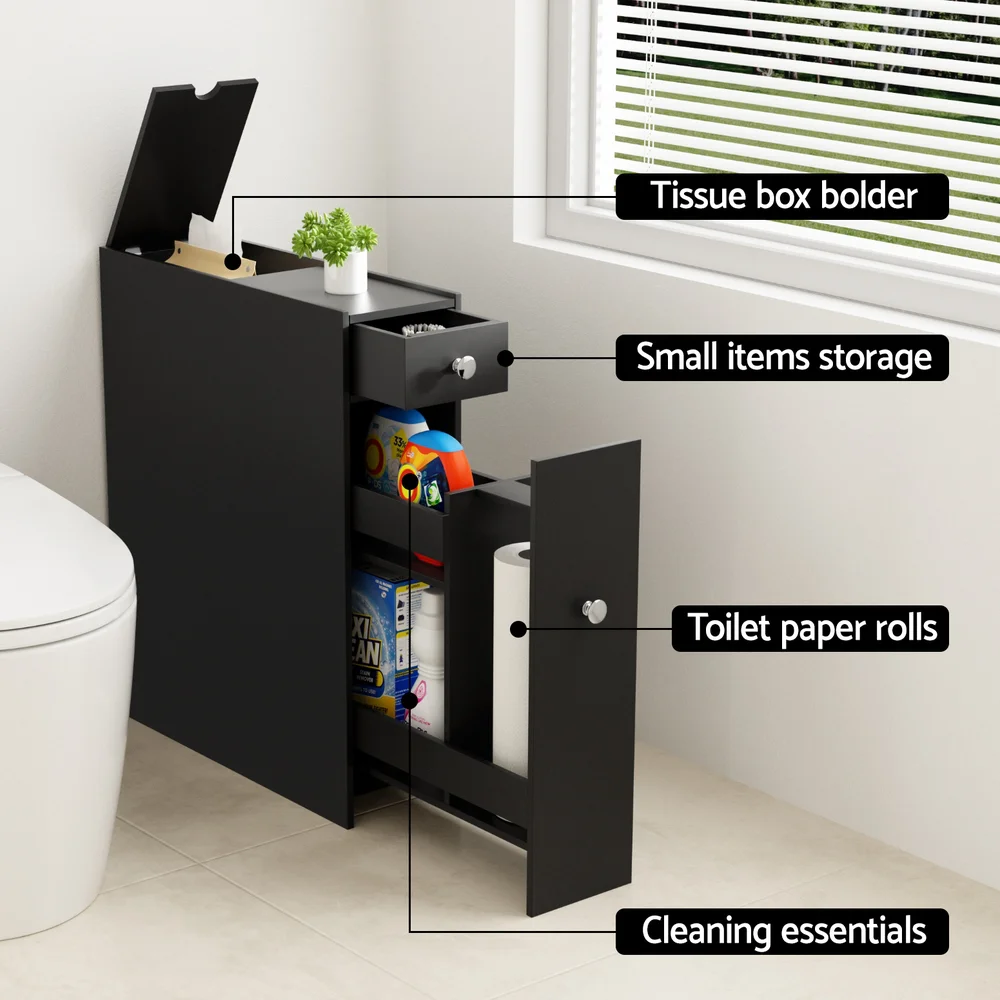 Maximise your space with the Artiss Bathroom Storage Cabinet. Designed with a slim, slide-out profile, this elegant black MDF cabinet fits seamlessly into tight spaces in bathrooms, kitchens, bedrooms, or living rooms. Durable, rust-resistant, and easy to assemble, it keeps essentials organised while complementing any decor. Lightweight yet sturdy, it's the practical solution for modern living. Enjoy long-lasting quality with a 1-year warranty.