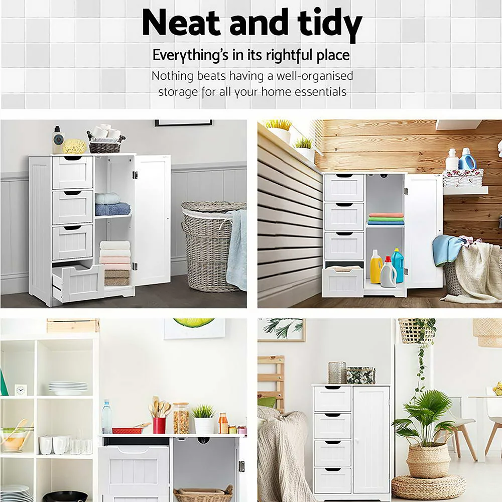 Artiss White Bathroom Cabinet: 4 Drawers & 2-Shelf Cupboard, Eco-Friendly MDF, 54x29x83cm, Sleek Design for Modern Homes