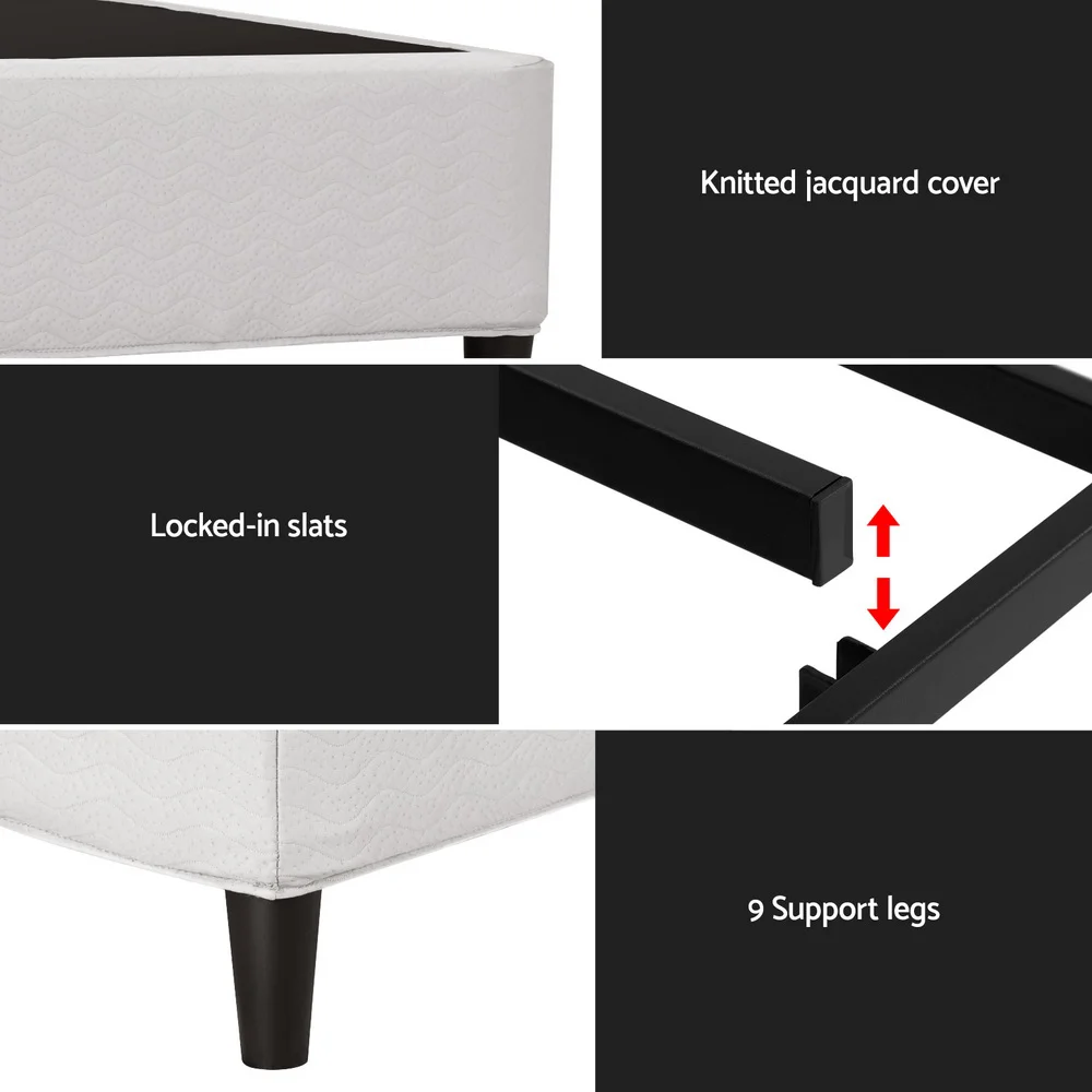 Transform your sleep experience with the Artiss Mason King Size Bed Frame. Crafted from durable metal with robust slats, it ensures solid support and peace of mind. Wrapped in premium grey knitted jacquard fabric, it combines style and comfort effortlessly. Rest easy, feel snug, and add a touch of elegance to your bedroom with the Artiss Mason Bed Frame. Assembly required, with a 1-year warranty included.