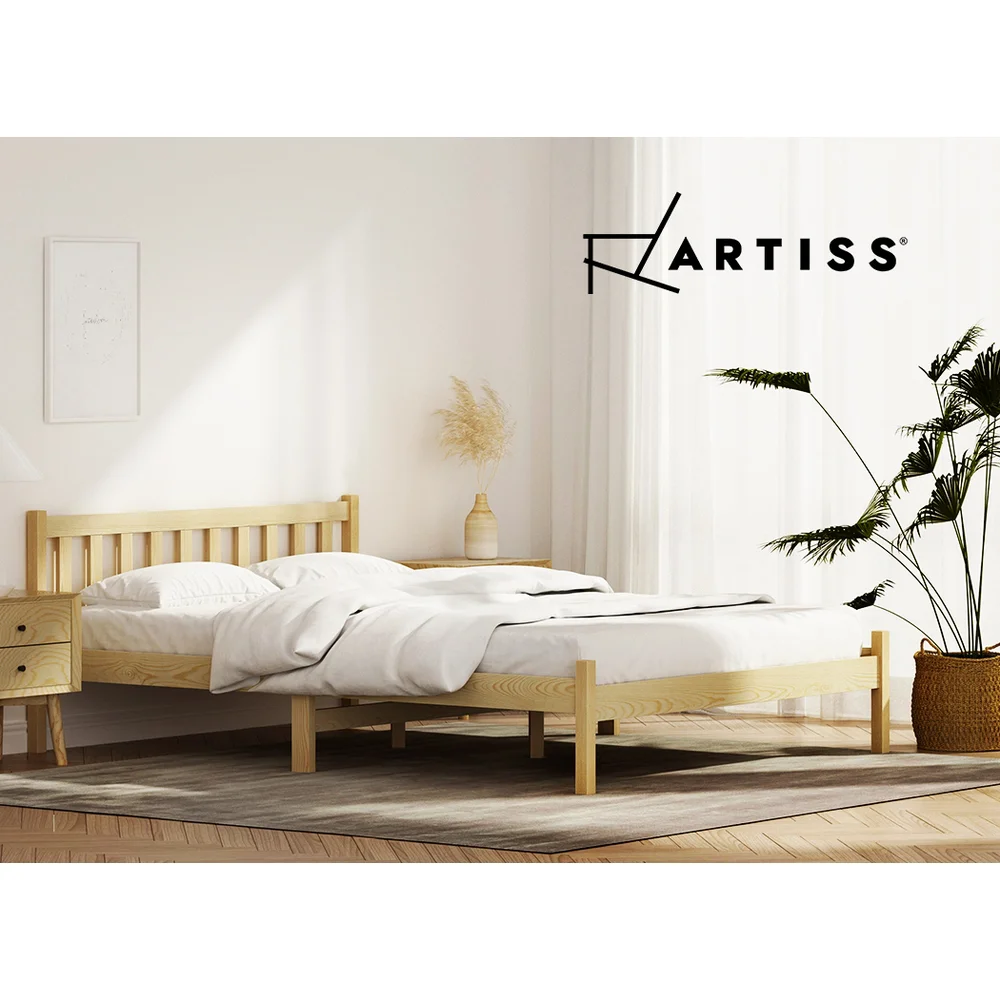 Artiss Wooden Bed Frame, Double Size, Solid Pine, Oak, 198x145cm, Rustic Classic Design, Extra Storage, Sturdy Build