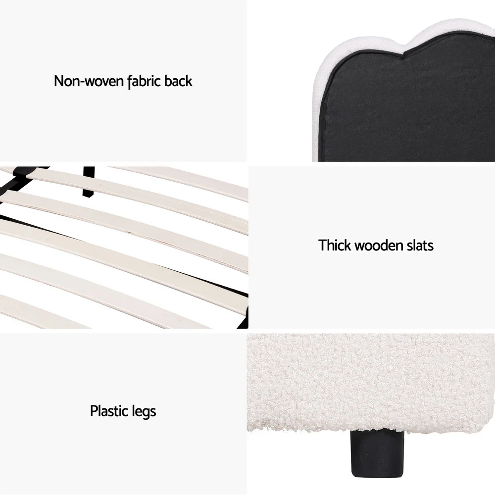 Artiss DARA Double Size Bed Frame Boucle Upholstered, Padded Headboard, Pine Wood Slat Support, Black, Sturdy Design