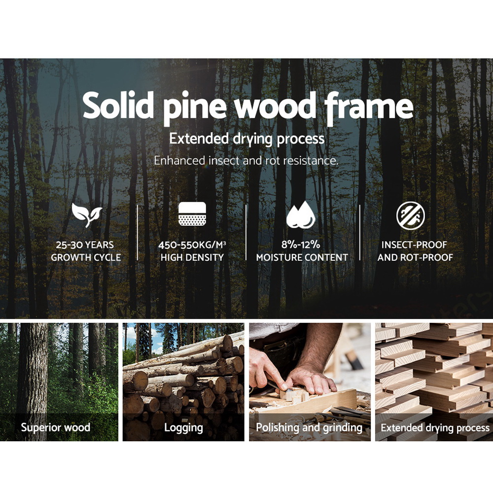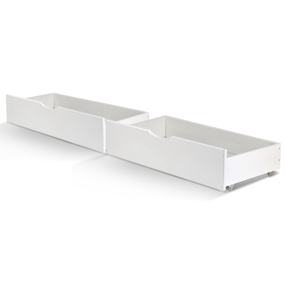 Artiss Wooden Bed Frame Storage Drawers, Solid Pine, Single Size, White, 91x47x20cm, Eco-Friendly Trundle Set