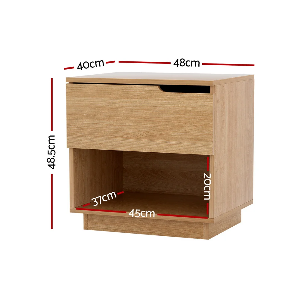 Artiss Pine Bedside Table: E1 Particle Board, 1 Drawer & Shelf, Air Gap Handle, 48x40x48.5cm, Easy-Clean & Anti