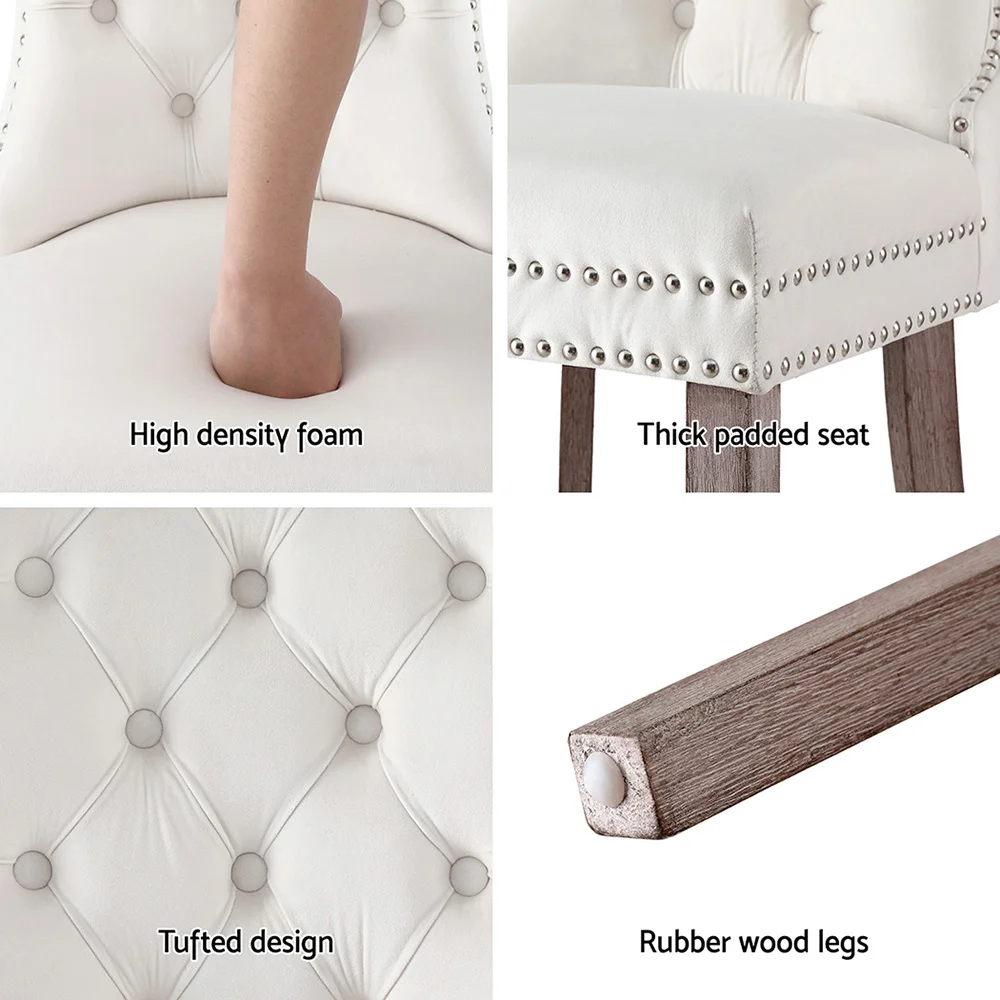 Artiss Set of 4 White Dining Chairs, PU Leather, Diamond Tufted, Padded Seat, Beech Wood Legs, 150kg Capacity