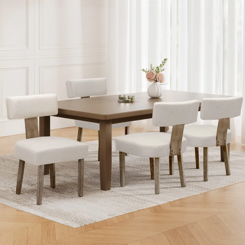 Artiss Milford Dining Chairs Set of 4 - Beige Linen Fabric, Rubber Wood Frame, 150KG Capacity, 1-Year Warranty