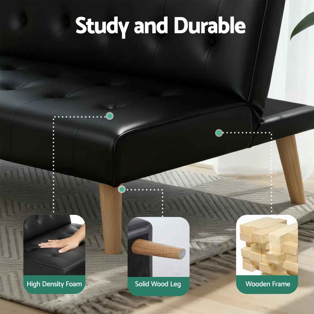 Artiss 3-Seater Sofa Bed, PU Leather, 168CM, Black, Cinema Lounge, Adjustable Recline, Space-Saving Design