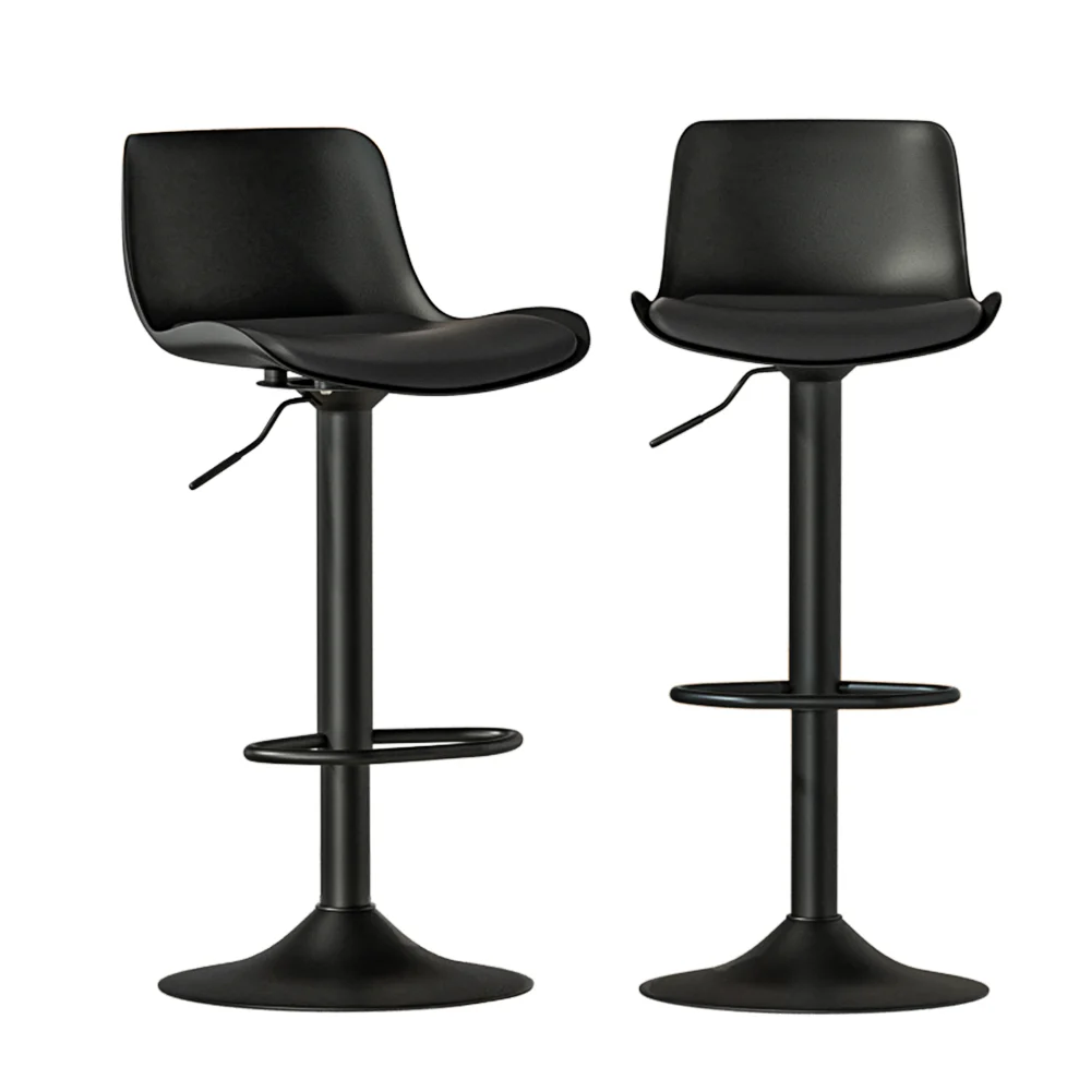 Artiss 2x Fynn Bar Stools, PU Leather, Adjustable Gas Lift, 360° Swivel, Black, 38cm Base, 53-78.5