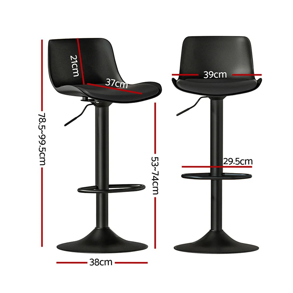 Relax and dine in style with the Artiss Fynn Bar Stools. These stools feature a classic design with contemporary flair, perfect for the modern home. Upholstered in premium PU leather with a robust PP backrest, they offer comfort for long evenings. The thick foam padded seat and semi-circular footrest ensure relaxed sitting, while the 360-degree swivel and adjustable height via SGS-tested gas lift provide convenience. A wide chrome base and rubber floor protector add stability and safeguard your floors.