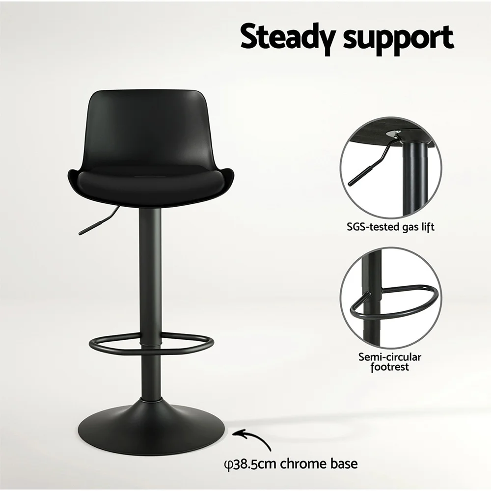 Artiss Fynn 4x Bar Stools - Black PU Leather, Padded Seat, Swivel, Adjustable Height, Chrome Base, 130kg Capacity