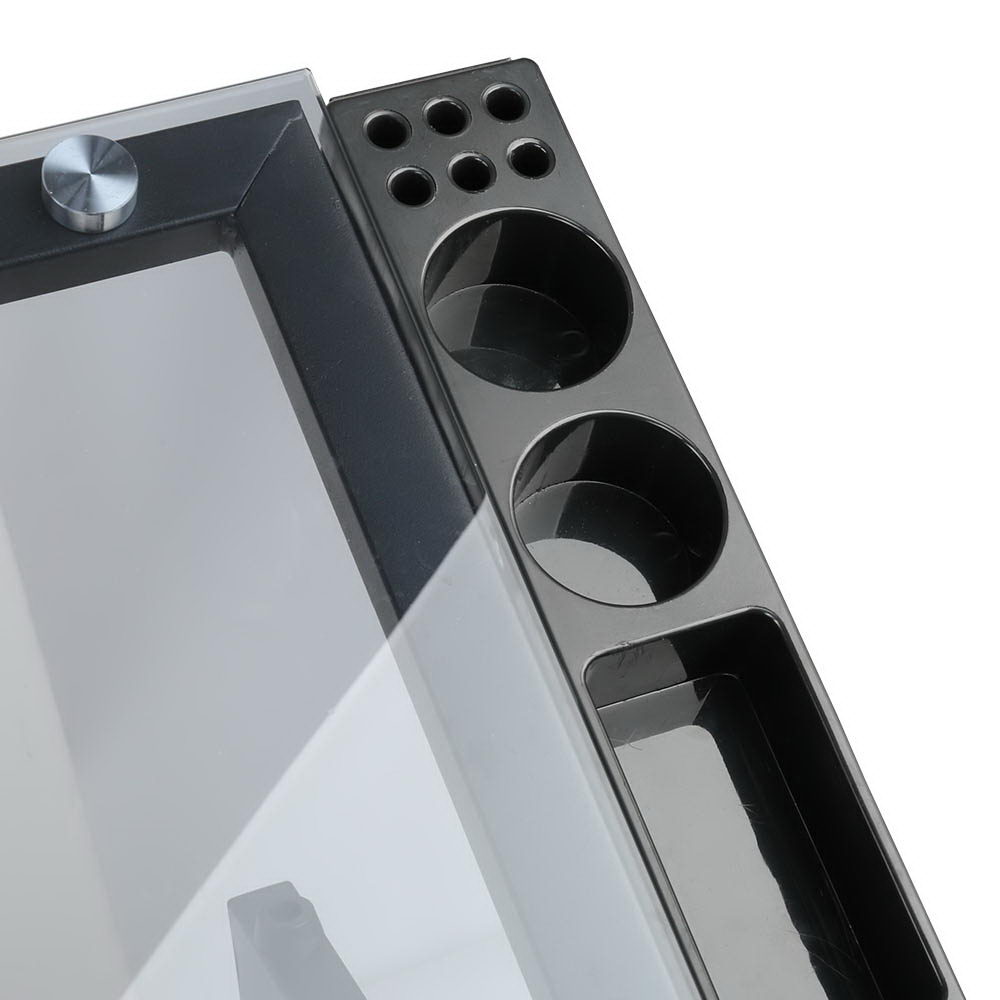Artiss Black Drafting Table: Adjustable Tempered Glass Desk with Storage Trays, Drawers, and Locking Castors