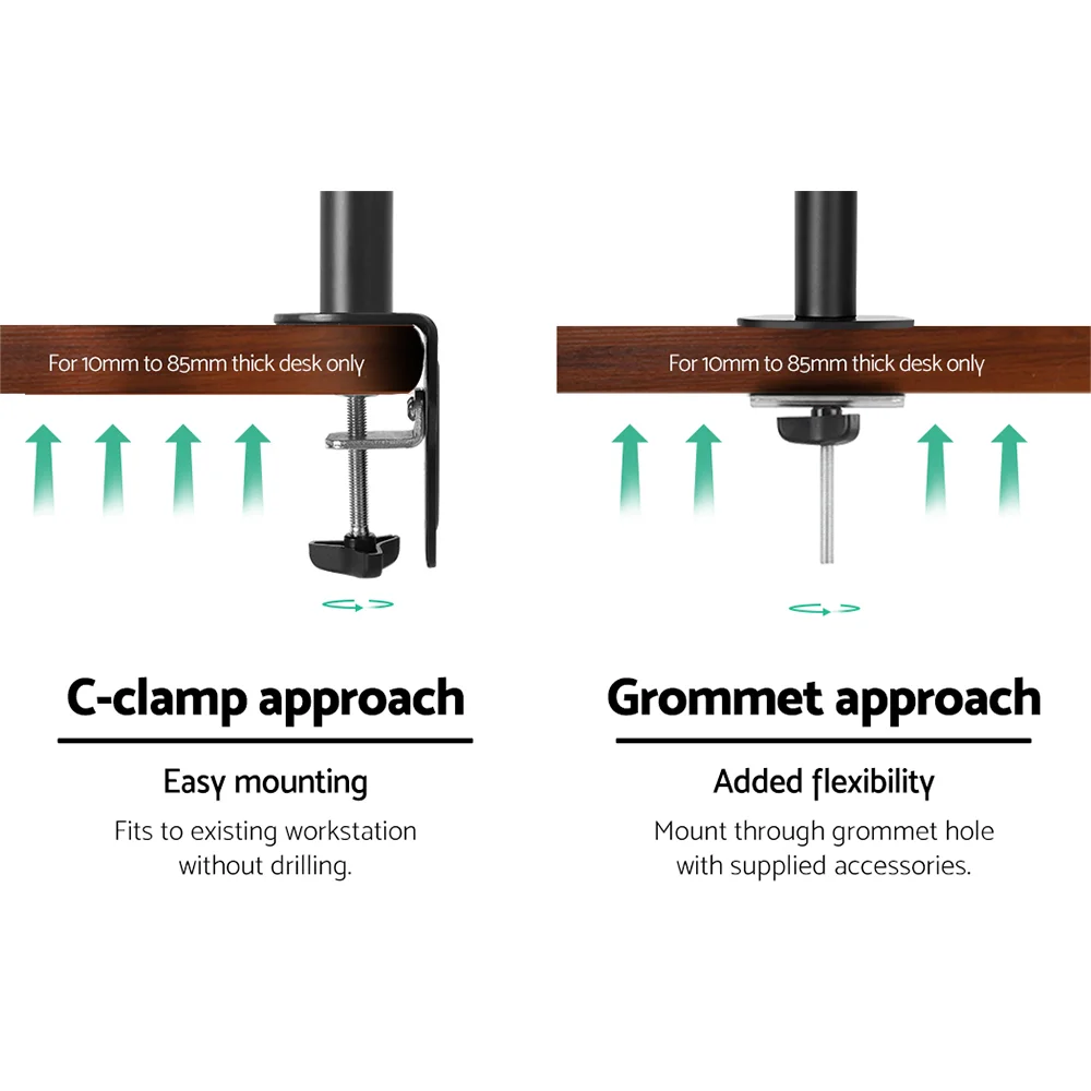 Artiss Fully Adjustable Monitor Arm Desk Mount - 360° Swivel, VESA, Freestanding, No Drilling, Cable Management