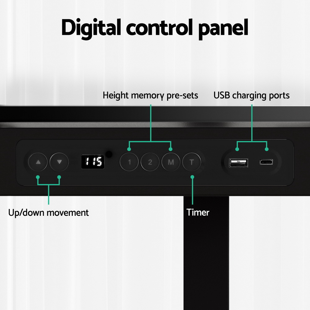 Artiss Motorised Standing Desk, Metal Frame, 140cm, Black, Dual Motors, Height Adjustable, Eco-Friendly Desktop