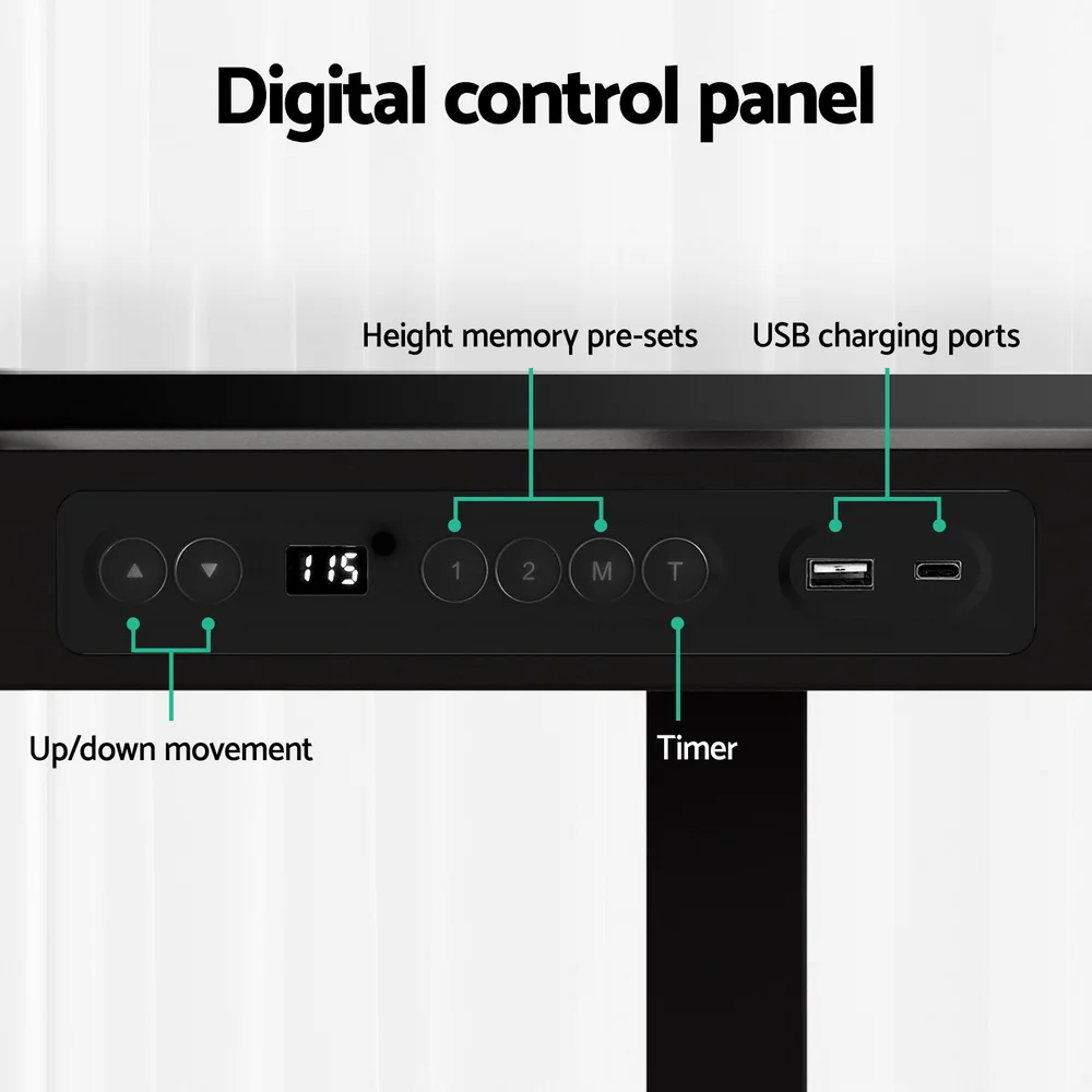 Artiss Motorised Standing Desk, Dual Motor Frame, Eco-Friendly Particleboard, 140CM, Black, Height Adjustable