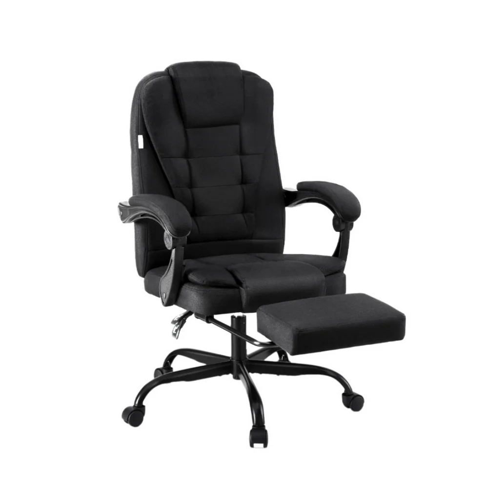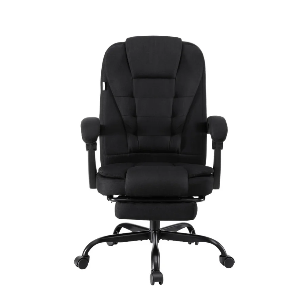Artiss Executive Office Chair with Fabric Seat, Footrest, 135° Recline, 360° Swivel, Adjustable Height, Black