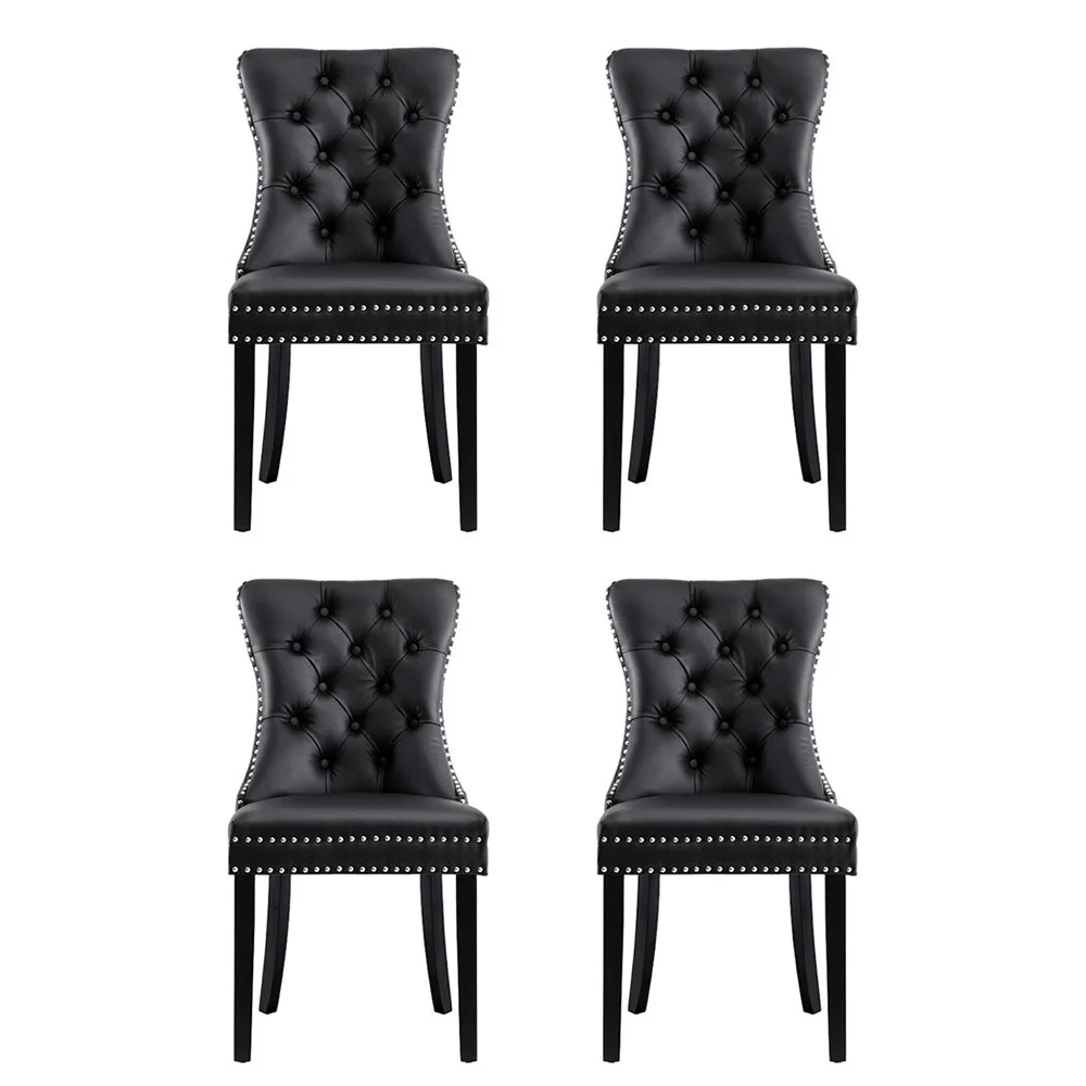 Timeless Elegance: Set of 4 Artiss Black Dining Chairs with PU Leather, Button-Tufted Back, and Rubberwood Legs
