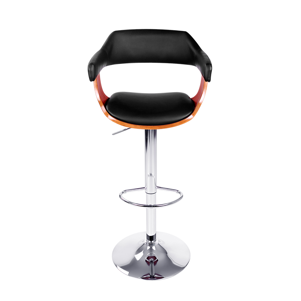 Artiss Selina Black Bar Stool - PU Leather, Wooden Seat, Chrome Gas Lift, Swivel, Adjustable 90-110cm, 130KG Capacity