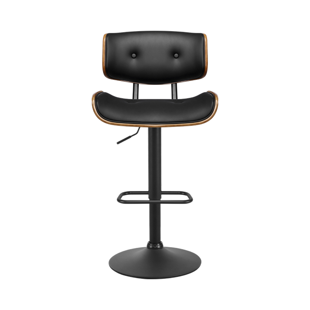 Artiss 1x Swivel Bar Stool Black PU Leather Adjustable Gas Lift Full Back Chrome Frame 53–75cm Kitchen Counter Chair