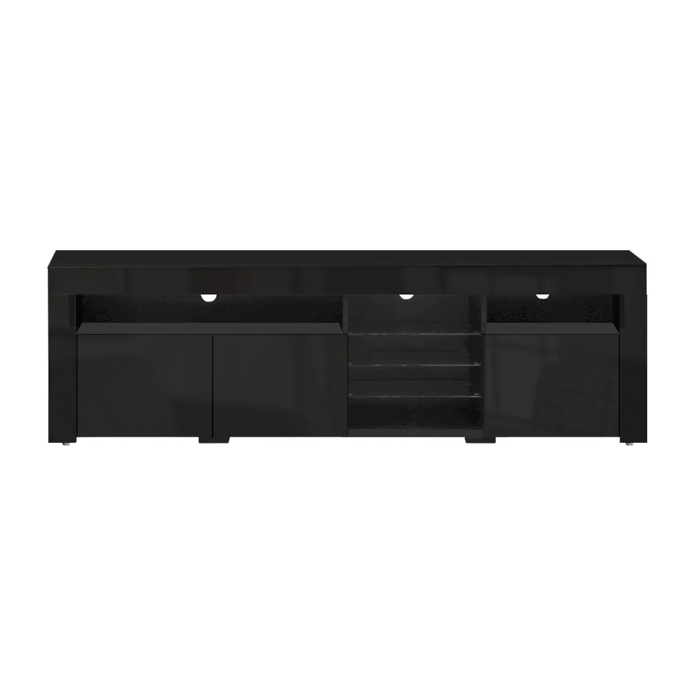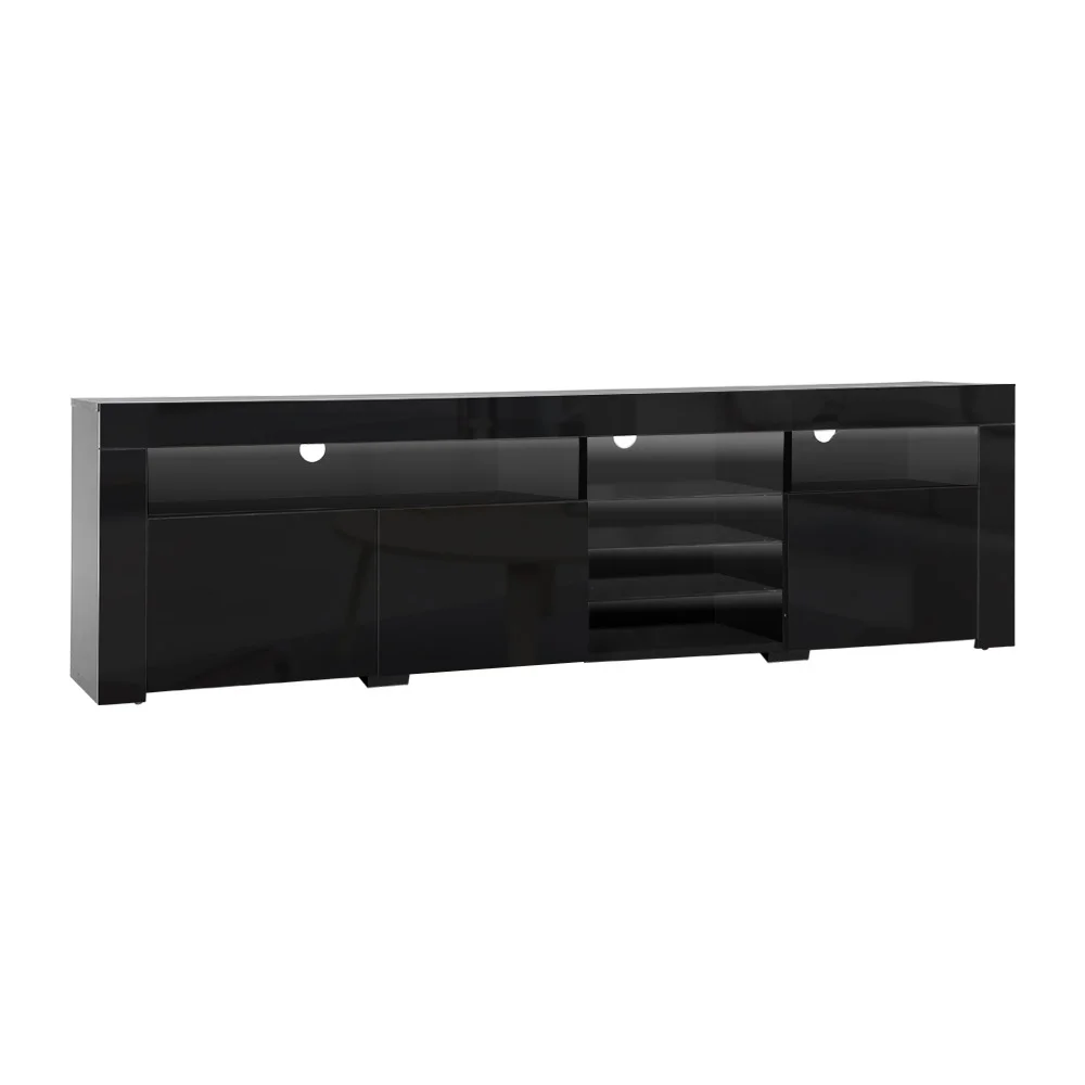 Artiss TV Cabinet Entertainment Unit 200cm Black High Gloss RGB LED Lights Storage Drawers Modern Furniture