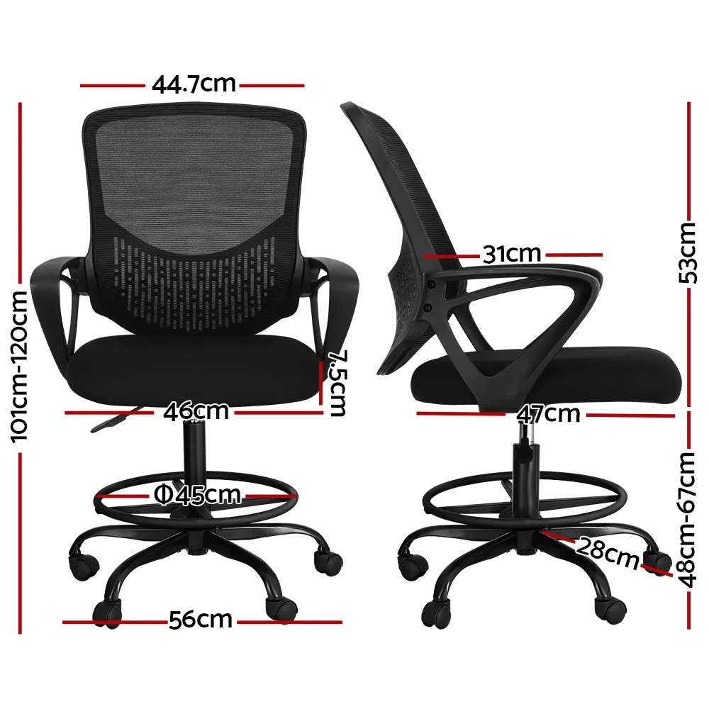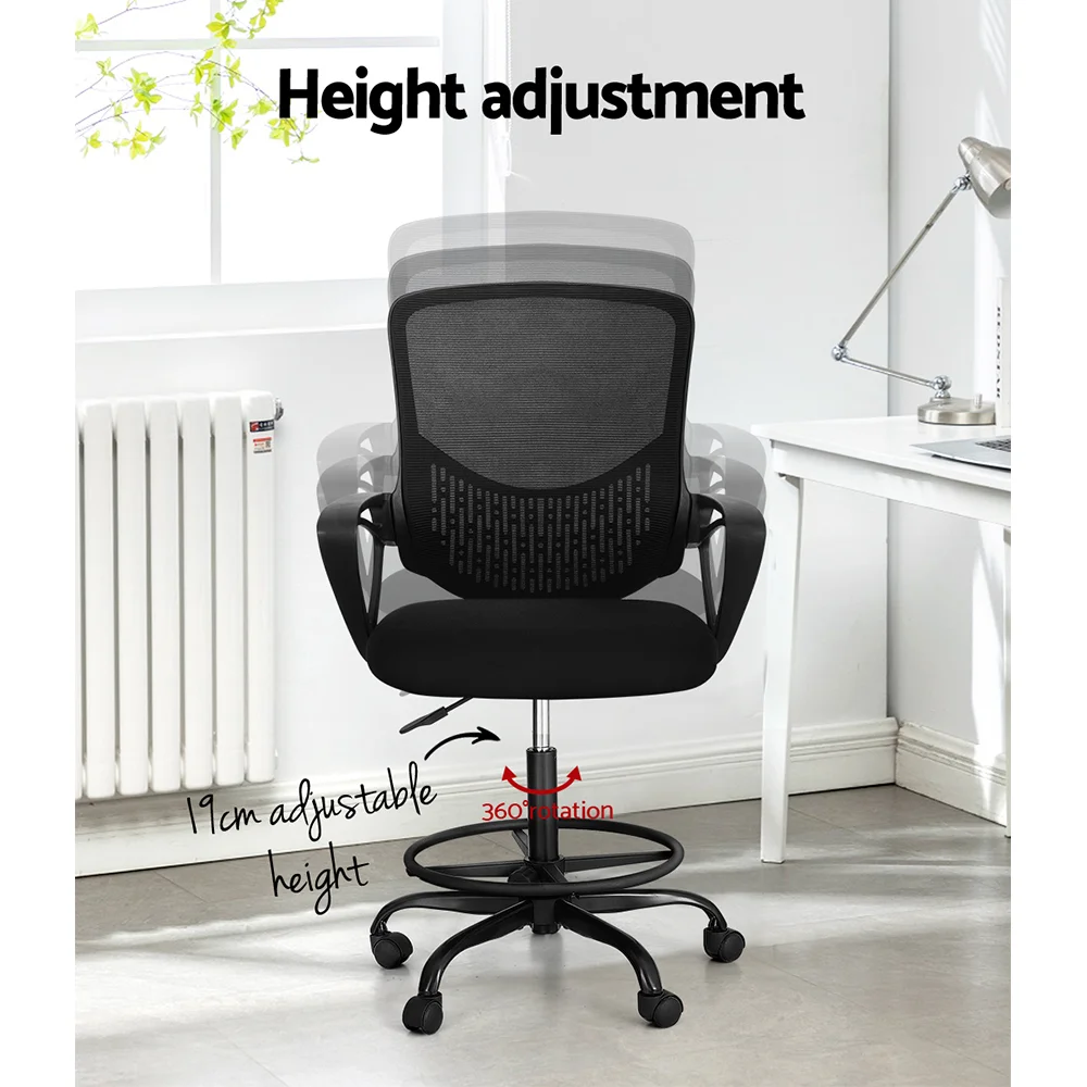Artiss Black Mesh Drafting Stool Office Chair with Adjustable Height, 360° Swivel, Footrest & Contoured Backrest