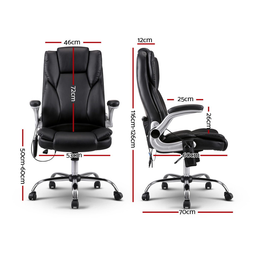 Artiss 8 Point Massage Office Chair Heated PU Leather Black, Reclining, Remote Control, Lumbar Support, 150kg Capacity
