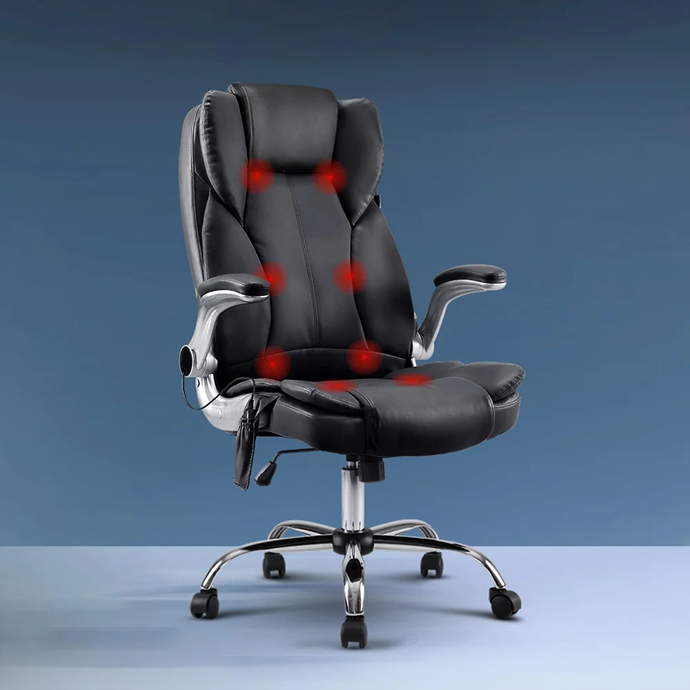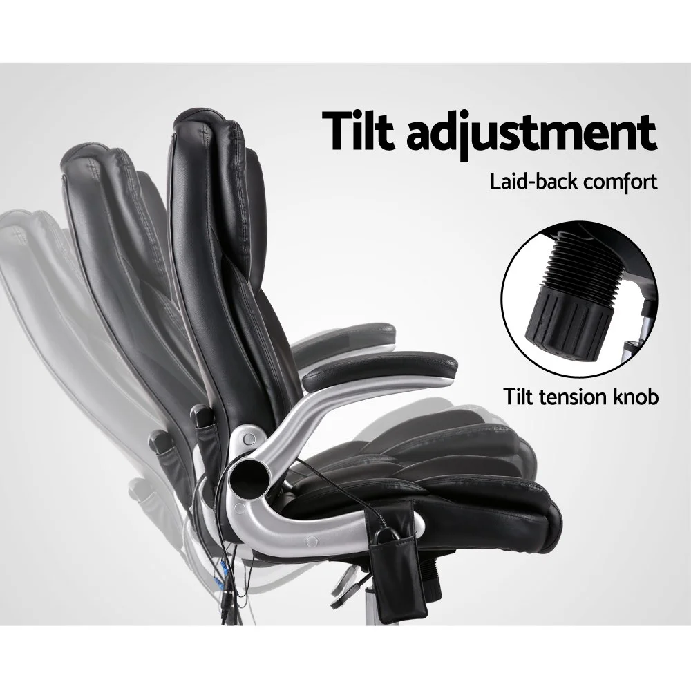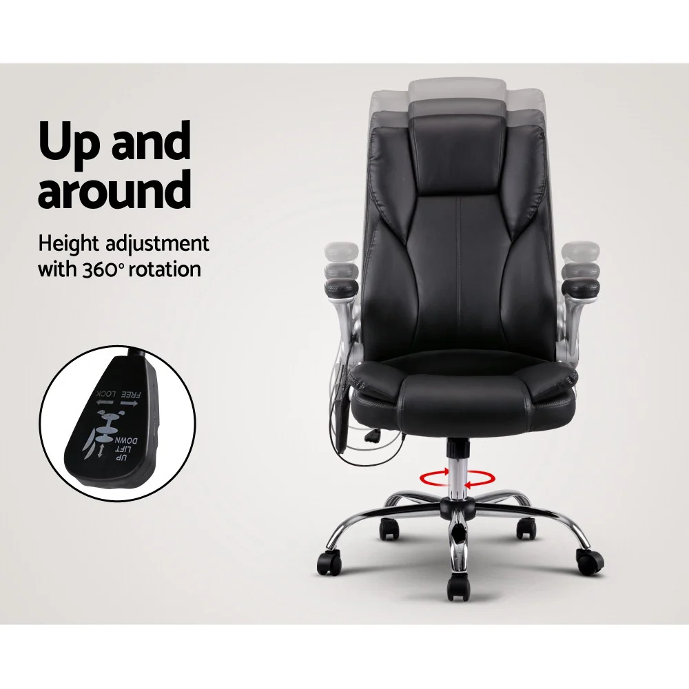 Artiss 8-Point Massage Office Chair in Black PU Leather with Remote Control, Lumbar Support, and Adjustable Height