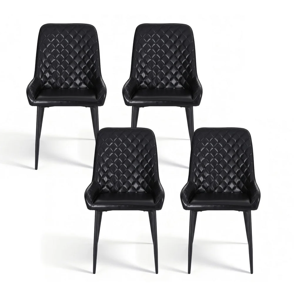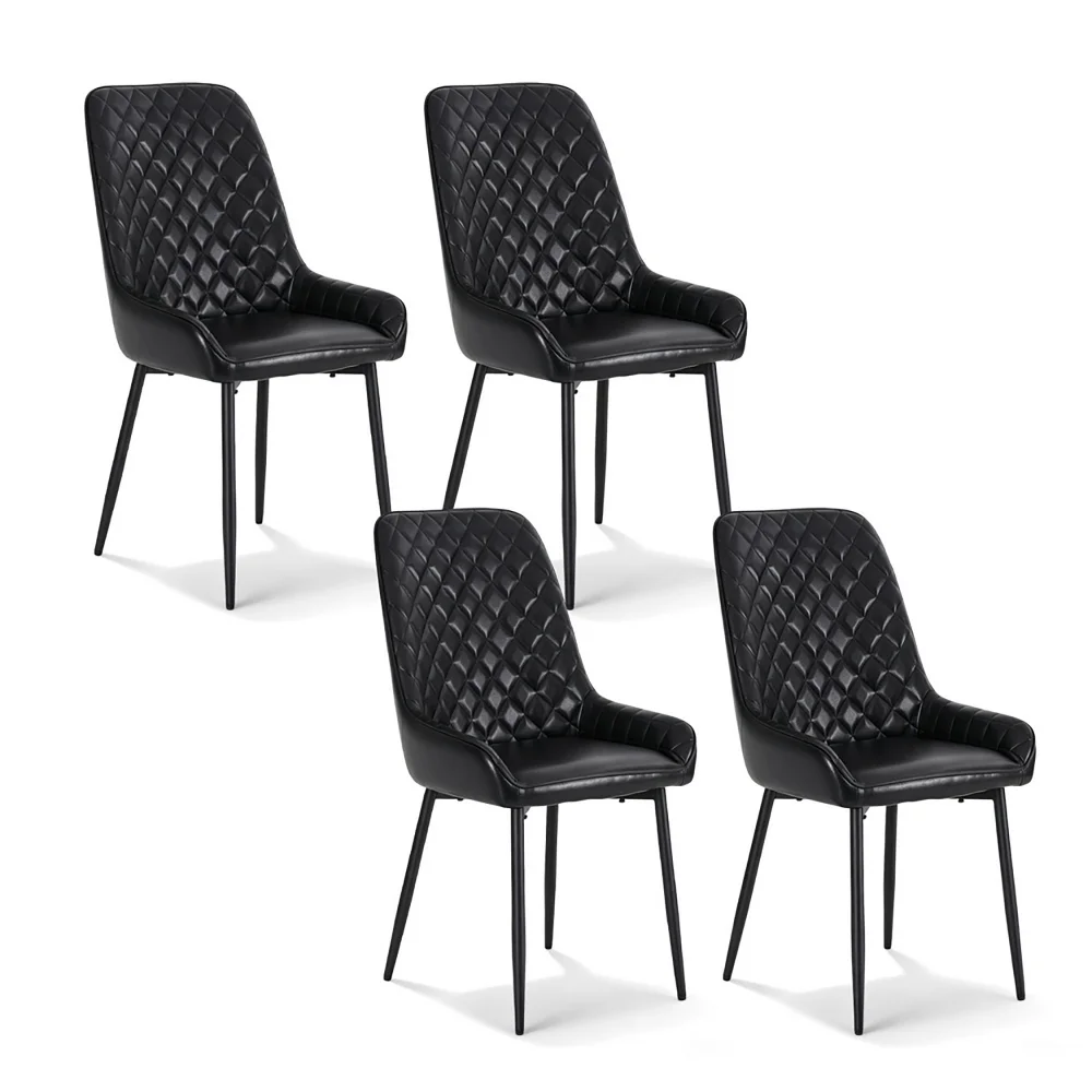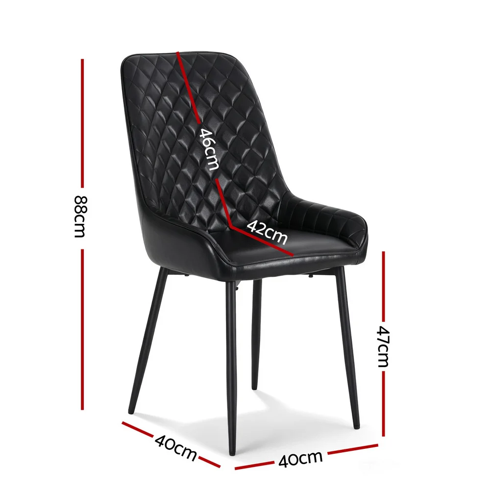 Artiss Set of 4 Black Dining Chairs PU Leather, Diamond Tufted, Foam Padded, Wooden Legs, 150kg Capacity