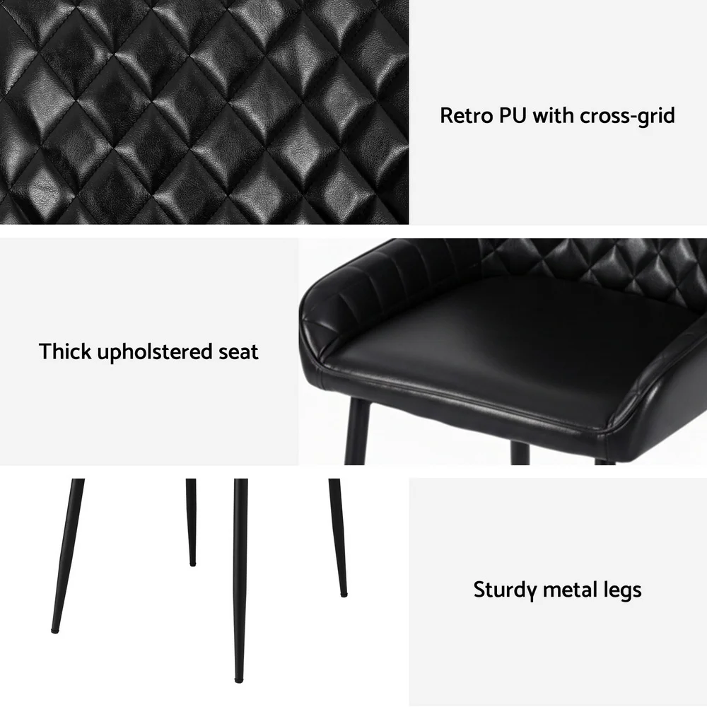 Artiss Retro PU Leather Dining Chairs Set of 4 - Black, Diamond Tufted, Metal Legs, Ergonomic Design, 40x40x88cm